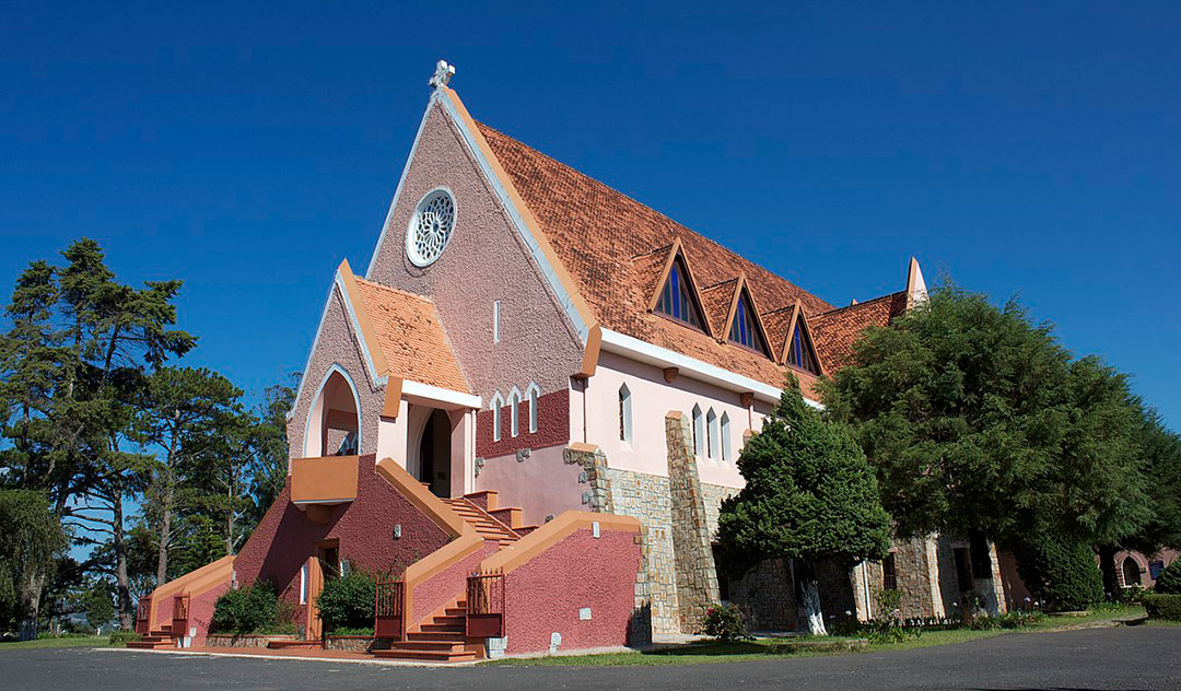 + Nhà thờ Domein Đà Lạt - Nhà thờ màu hồng phấn, điểm check in nổi tiếng của Đà Lạt