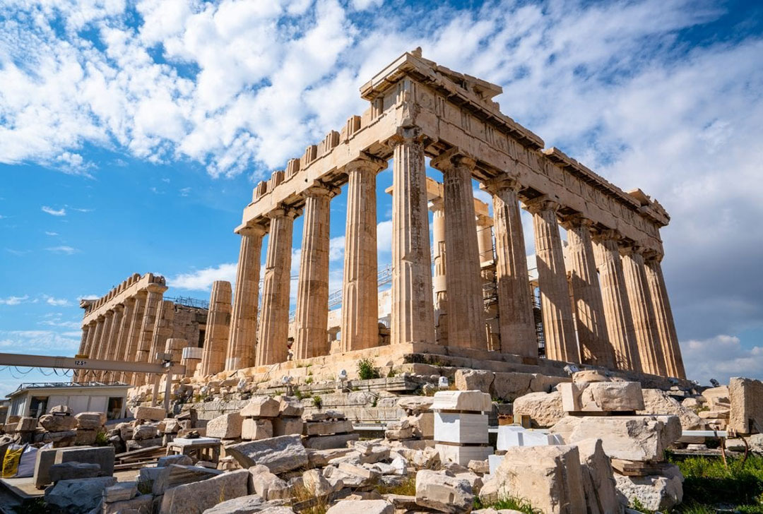 + Đền Athena - Công trình xây dựng nổi tiếng nhất còn lại của Hy Lạp cổ đại, được ngợi ca là thành tựu kiến trúc của Hy Lạp. Các điêu khắc trang trí của ngôi đền làm từ đá cẩm thạch trắng, được coi là đỉnh cao của nghệ thuật Hy Lạp cổ đại, là một trong những công trình văn hóa vĩ đại nhất thế giới.