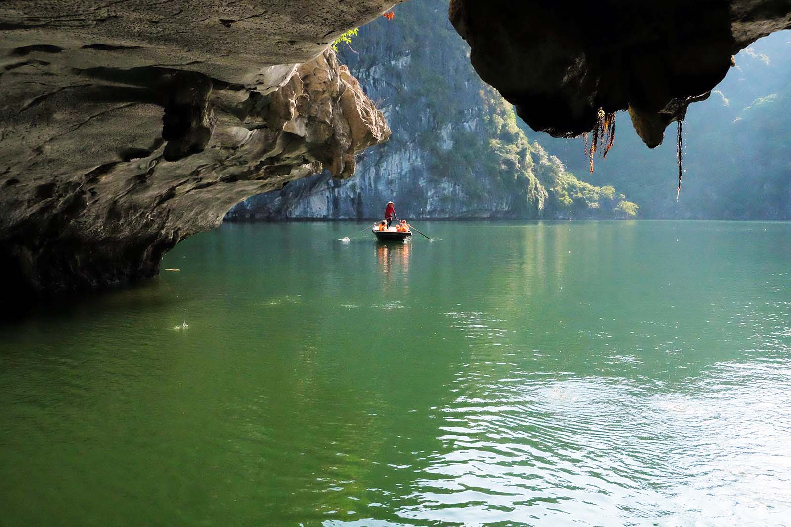 7:15 Sau bữa ăn sáng nhẹ, du khách lên thuyền nan đi thăm quan hang Sáng Tối.