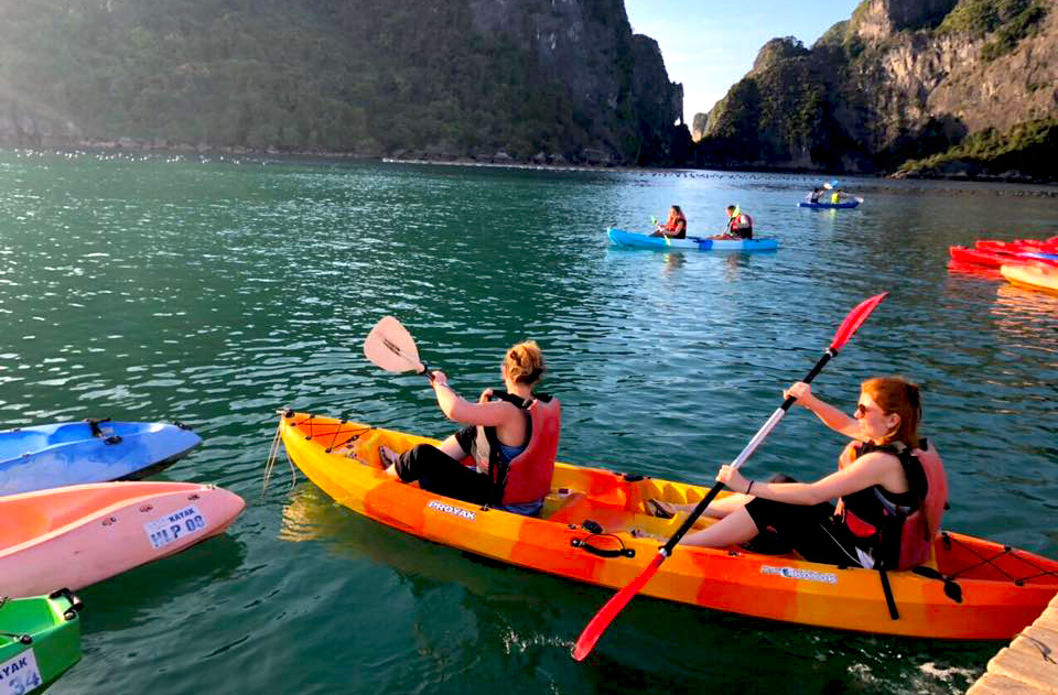 15:30 Tàu nhỏ của chúng tôi sẽ đưa quý khách tham quan làng Ngọc Trai – nơi sản xuất và nuôi trồng Ngọc Trai. Tham gia chèo kayaking. Sau đó hành trình sẽ tới đảo Titop, tại đây quý khách sẽ thoải mái tắm biển,chơi các trò chơi trên biển, leo núi. Quý khách có thể lên đỉnh hòn Titop để ngắm nhìn Vịnh Hạ Long từ trên cao