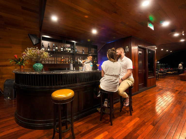 Quý khách sẽ có thời gian thưởng thức trà theo phong cách người Việt cổ – ăn kèm với một số loại bánh cổ truyền việt nam. Hoặc quý khách có thể yêu cầu dịch vụ mát xa thư giãn. (Vui lòng liên hệ với quản lý du thuyền)