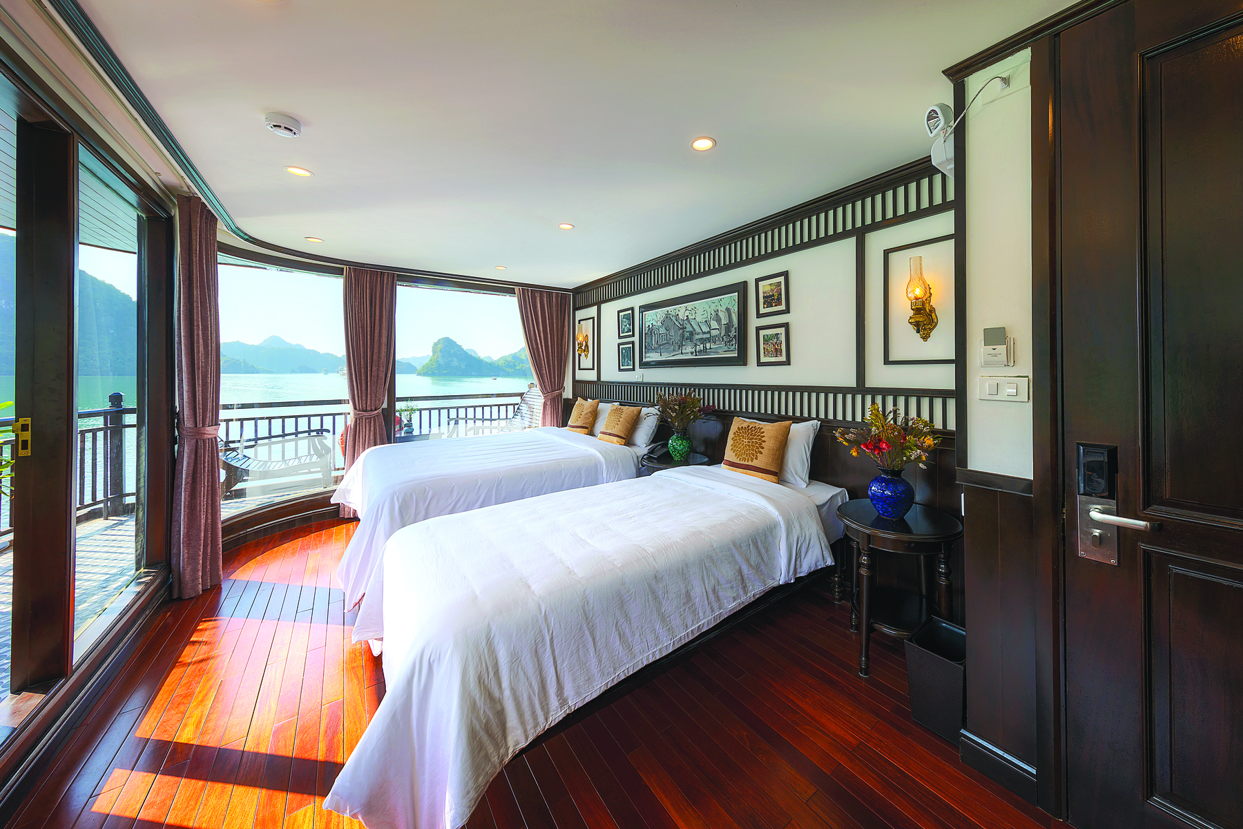Thử tưởng tượng buổi sáng các bạn thức dậy, đứng trên sân thượng của du thuyền, xung quanh là khung cảnh bình minh tuyệt đẹp trên vịnh, rồi hít 1 hơi thật sâu bầu không khí trong lành và kết hợp uyển chuyển với những động tác Taichi – Thái cực Quyền. Cảm giác cơ thể mình được tái tạo lại năng lượng sau những chuỗi ngày dài làm việc mệt mỏi hay thư giãn với một tách trà, café hay một ly đồ uống ở bất cứ nơi nào bạn thích trên tàu và ngắm nhìn những cảnh đẹp nối tiếp nhau không dứt trên Vịnh.