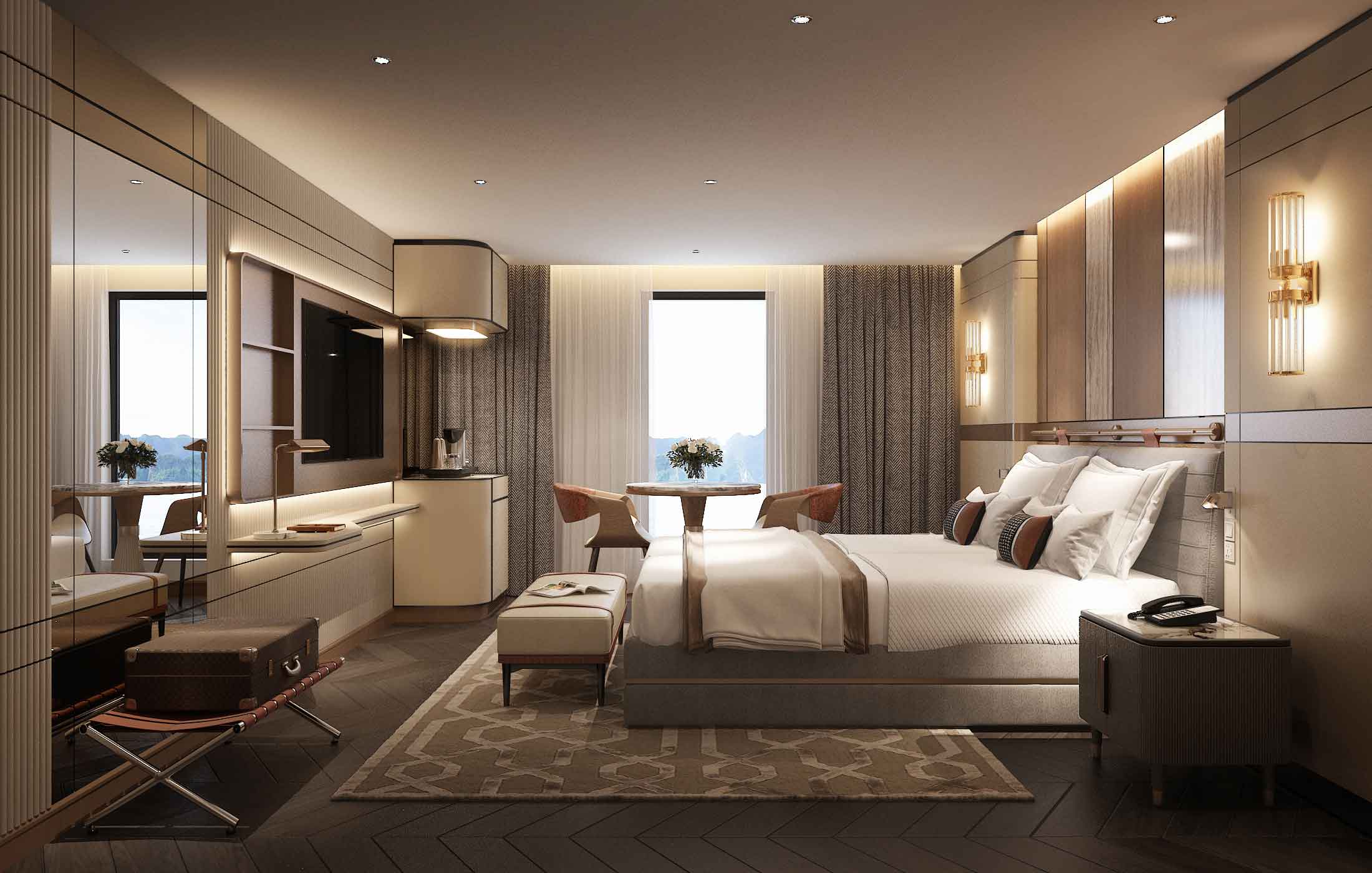 Với 55 phòng nghỉ view hướng biển trang nhã, sang trọng và tiện nghi, Grand Pioneers Cruise không chỉ mang đến cho du khách không gian nghỉ dưỡng tuyệt vời, mà còn giúp du khách đánh thức các giác quan, chữa lành tâm trí và hoà mình với thiên nhiên trong suốt hải trình.