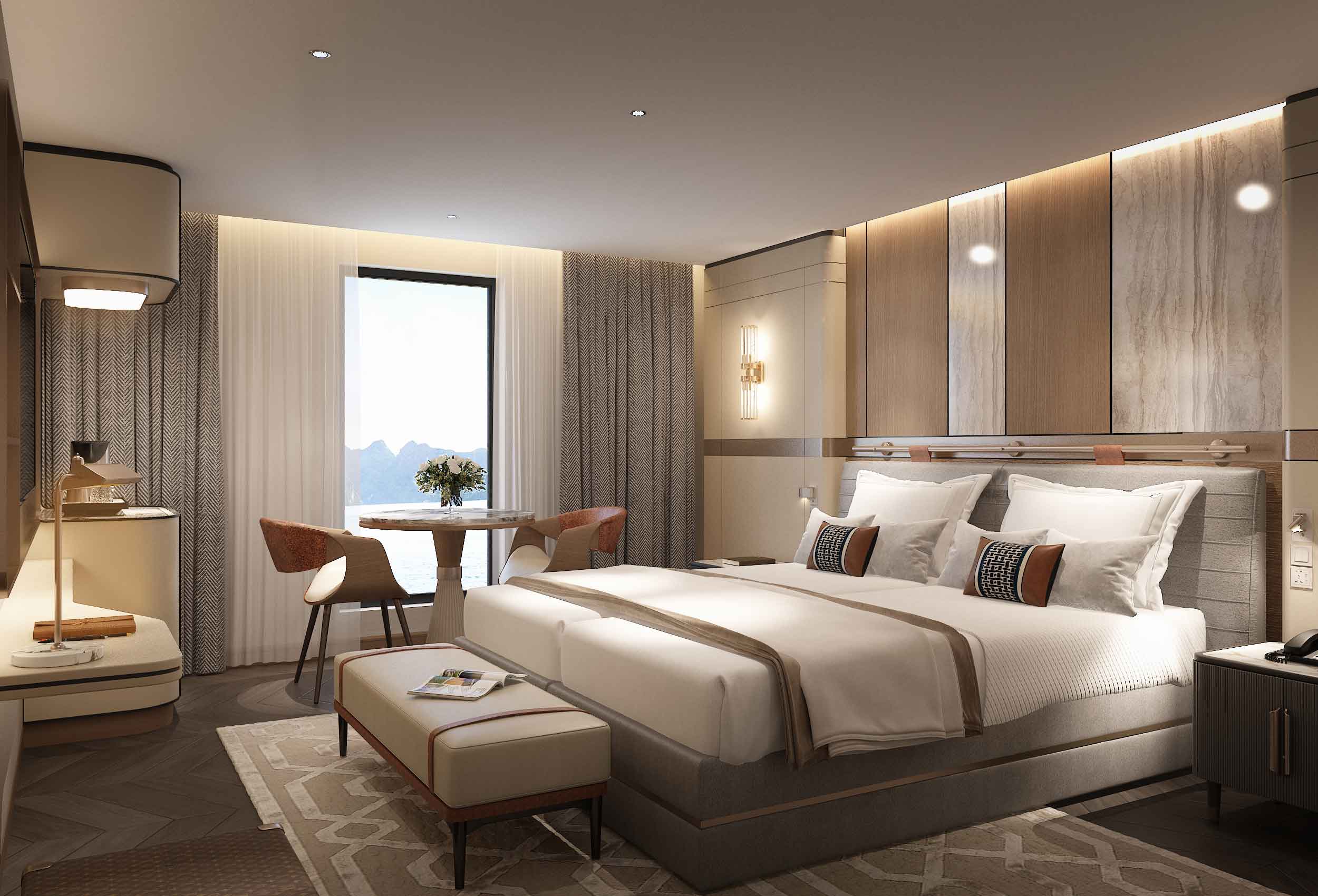 Với 55 phòng nghỉ view hướng biển trang nhã, sang trọng và tiện nghi, Grand Pioneers Cruise không chỉ mang đến cho du khách không gian nghỉ dưỡng tuyệt vời, mà còn giúp du khách đánh thức các giác quan, chữa lành tâm trí và hoà mình với thiên nhiên trong suốt hải trình.