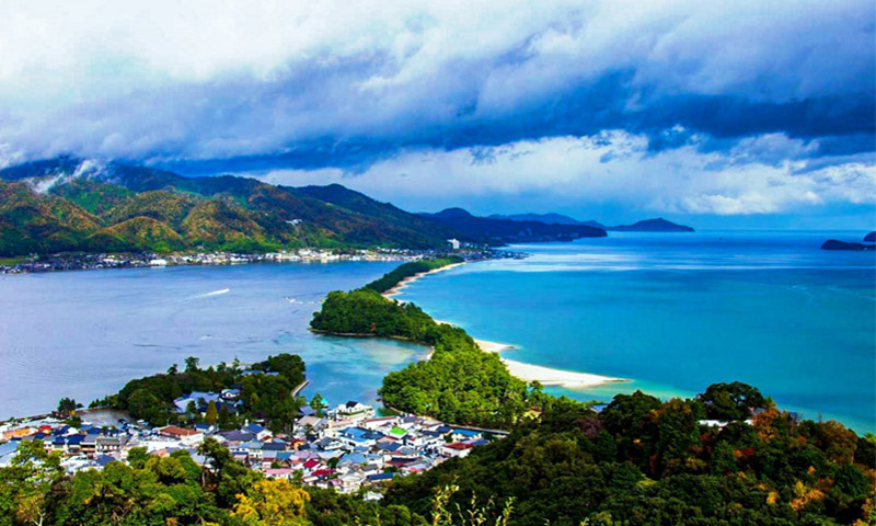 + Amanohashidate là bãi cát dài 3.6km nằm ở phía Bác tỉnh Kyoto, cắt tuyến Bắc-Nam qua Biển Đảo Aso ở Vịnh Miyazu. Nơi đây được biết như là một trong ba phong cảnh đẹp nhất Nhật Bản, truyền thuyết kể lại rằng bãi cát này thực ra là một chiếc thang dây dẫn đến thiên đường.