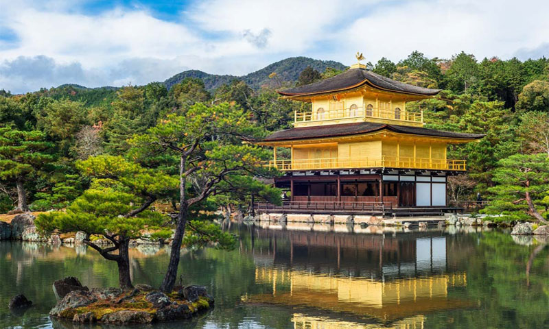 + Chùa Vàng Kinkakuji nằm tại phía Tây Bắc của Kyoto, còn được gọi với một tên gọi khác là Rokuonji. Nét đặc trưng nhất về sự tinh xảo và cầu kì của chùa vàng chính là vị thế ấn tượng giữa những tán xanh của cây lá và ánh sáng tinh khiết phản chiếu của hồ nước tĩnh lặng. Hãy một lần đến với Kinkakuji để cảm nhận viễn cảnh nổi tiếng nhất của Kyoto.