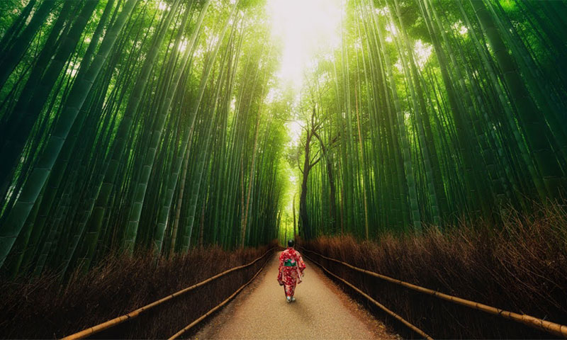+ Rừng tre Sagano – khi đặt chân vào đây, bạn không những sẽ bị choáng ngợp bởi vẻ đẹp tự nhiên của nó mà còn được lắng dịu trong tiếng gió thổi xào xạc qua những cây tre xanh cao vút như những bản nhạc du dương được cất lên từ mẹ thiên nhiên, đem lại cho ta cảm giác như đang lạc vào chốn tiên cảnh Đoàn dùng cơm trưa tại nhà hàng