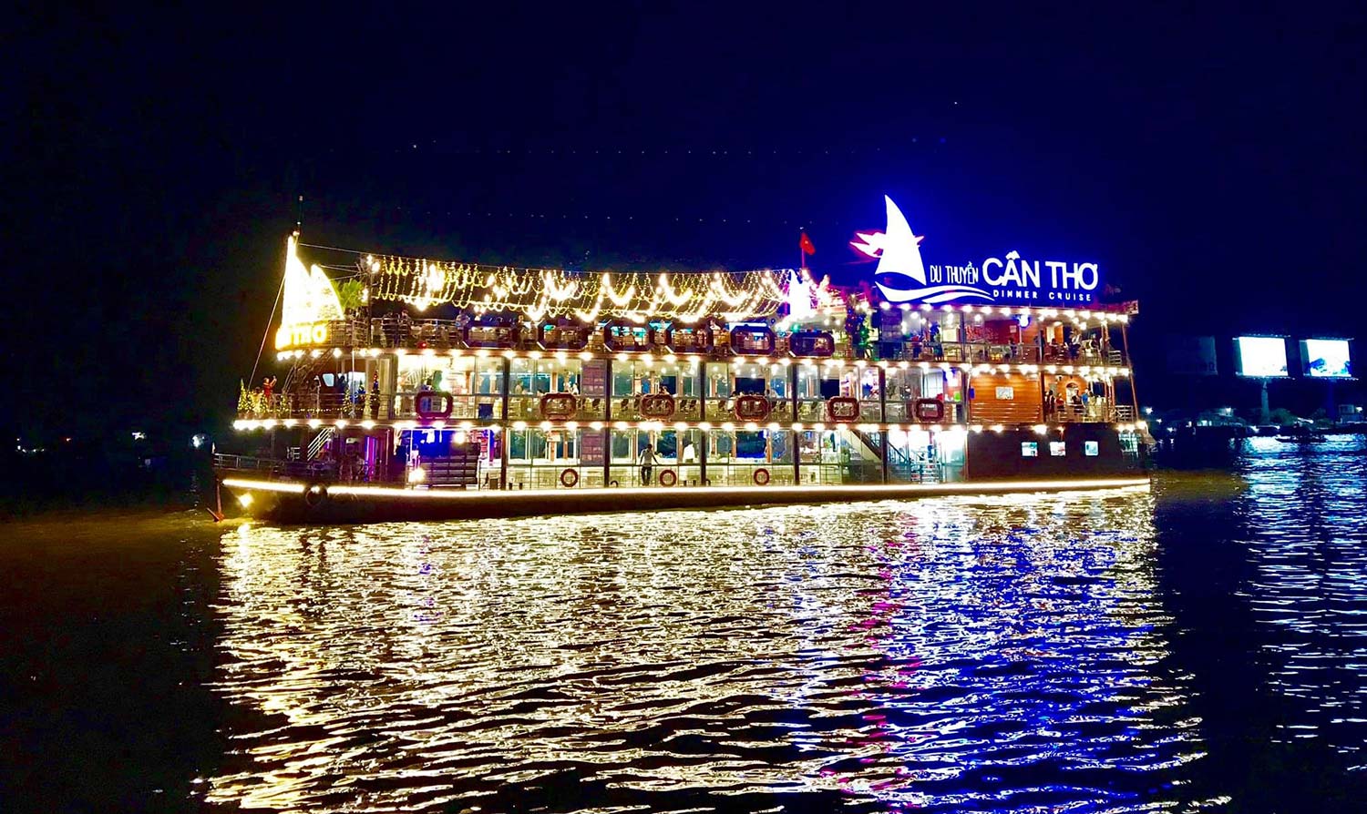 Tối: Đoàn dùng cơm tối trên Nhà hàng du thuyền Cần Thơ, thưởng thức các món đặc sản miền tây, nghe những làn điệu đàn ca tài tử mượt mà trên dòng sông Hậu thơ mộng,… Tự do khám phá Tây Đô về đêm.