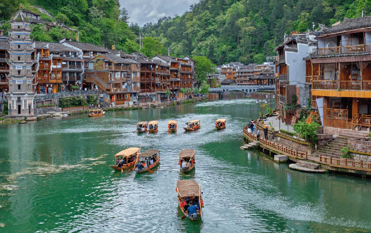 + Sau bữa tối quý khách dạo bộ ở thị trấn. (Một trong những thị trấn văn hóa lịch sử nổi tiếng Trung Quốc, còn được gọi là "Thị trấn cổ Thái Cực", Trấn Viễn cổ trấn có non nước quanh co, phong cảnh mê người, Trấn Viễn là một bức tranh, là một bức tranh thủy mặc "mộc mạc trung kiến quý kỳ, thanh nhã trung hiển thần vận")