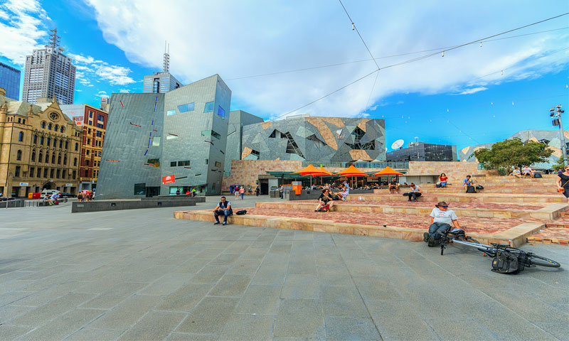 + Quảng Trường Federation: Quảng trường Federation là trung tâm cộng đồng và không gian công cộng chính của Melbourne. Với tên gọi thân mật là “Quảng trường Fed”, quảng trường này nằm tại trung tâm của Melbourne và cạnh đó là Nhà ga Flinders Street.